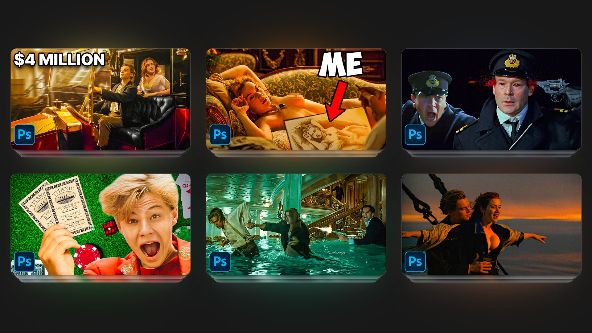Collection of 28 Titanic thumbnails Photoshop project files created for "If Titanic Was A YouTube Video".